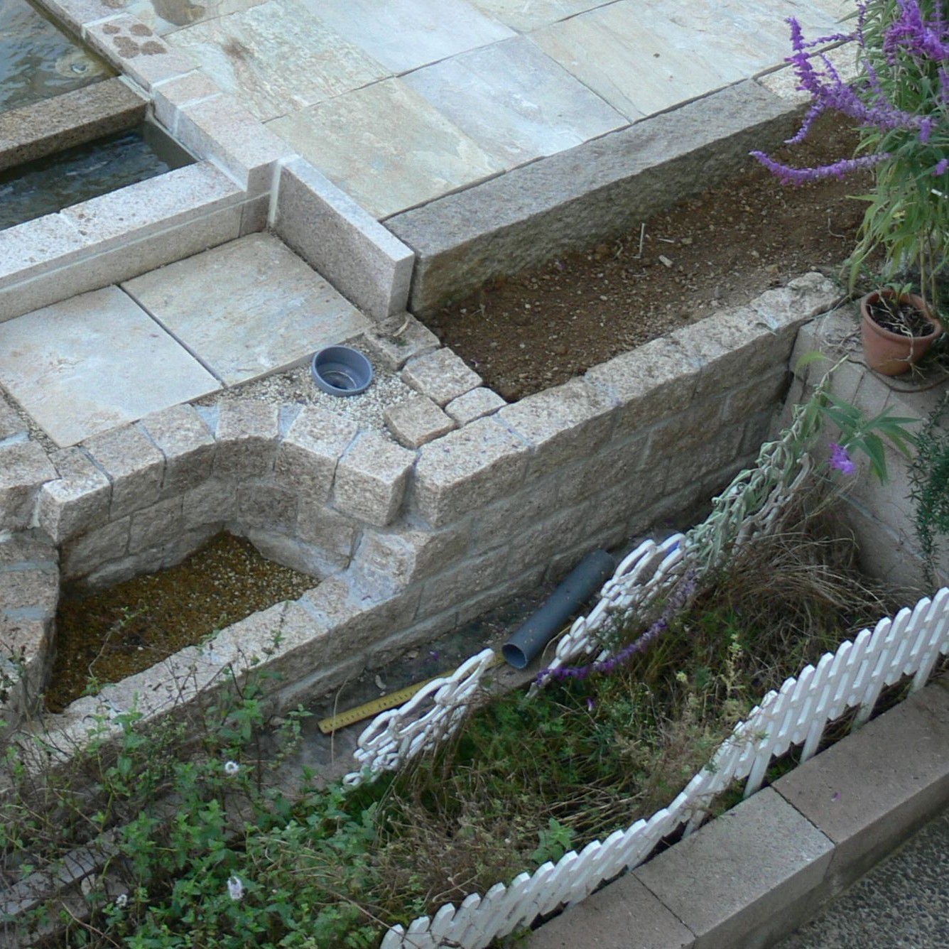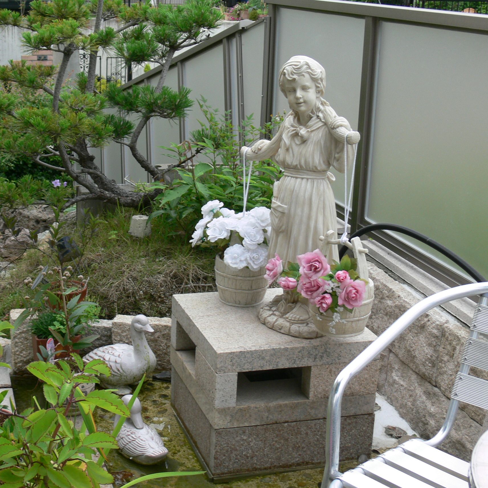 庭の傾斜した空き地に洋風テラスの制作を行いました。添景としてオーナメントの架台兼噴水と噴水の水を利用したカスケード風の小さな滝、そして小さな池。 次計画と合わせての水循環工事の制作なども掲載しています。